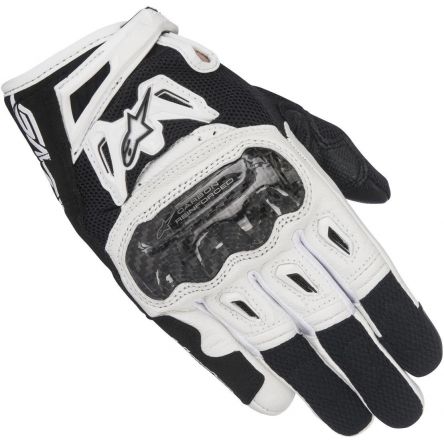 Накладка на долоні виготовлена із замші преміальної якості та слугує для надійнішого зчеплення, контролю та довговічності. Інноваційна карбонова захисна накладка Alpinestars на кісточках суглобів пальців ергономічної форми. Накладка посилена із зовнішнього боку товстою EVA-піною для кращої посадки. Кінчики пальців і зворотний бік долоні виготовлені із сітки, TPR-вставок, які забезпечують додаткову ударостійкість і вентиляцію в критичних зонах. Об'єм зап'ястя регулюється манжетою на липучці Velcro, а самі краї манжети виготовлені з м'якого неопрену та не подразнюють шкіру під час частих і різких поворотів. На пальцях обладнані вставкою, яка дає змогу керувати сенсорними екранами різних мобільних пристроїв і GPS-системами, не знімаючи перчатки.