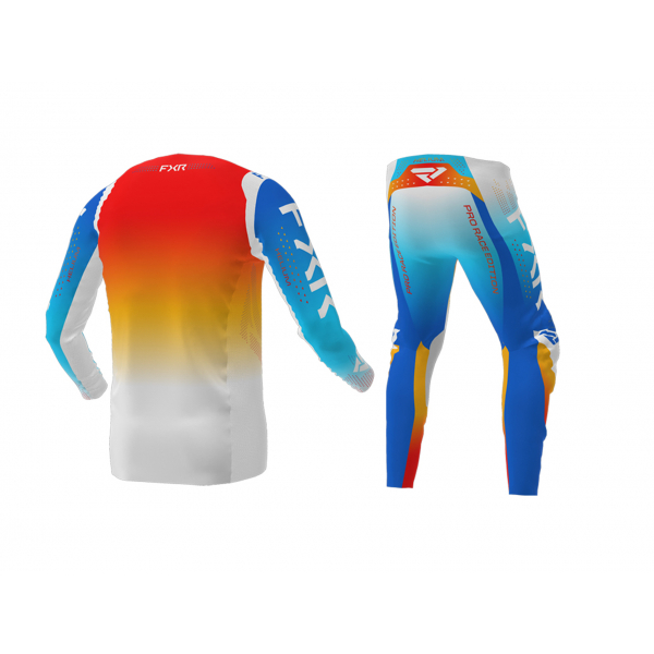 Мотоджерсі FXR Helium MX 22-Blue/Tangerine - це комплект, що складається з джерсі та штанів, створений для комфортної їзди на мотоциклі. Джерсі виготовлений з легкої сітки з поліестеру і спандексу, що забезпечує підвищену повітропроникність і комфорт водія. Атлетична посадка і надлегка конструкція дозволяють водієві вільно рухатися на мотоциклі. Манжети рукавів джерсі скріплені, що зменшує тертя і забезпечує додатковий комфорт водія. Пряжі, що вбирають вологу, забезпечують швидковисихаючі характеристики, що дозволяє водієві залишатися сухим і комфортним навіть під час інтенсивних тренувань.