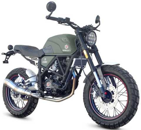 GEON SCRAMBLER 250 розганяється до максимальної швидкості 130 км / год, що робить його ідеальним вибором для швидких поїздок по місту або за місто. Завдяки своїй потужності, стильному дизайну та надійній конструкції, GEON SCRAMBLER 250 стане відмінним партнером для поціновувачів мотоциклів.