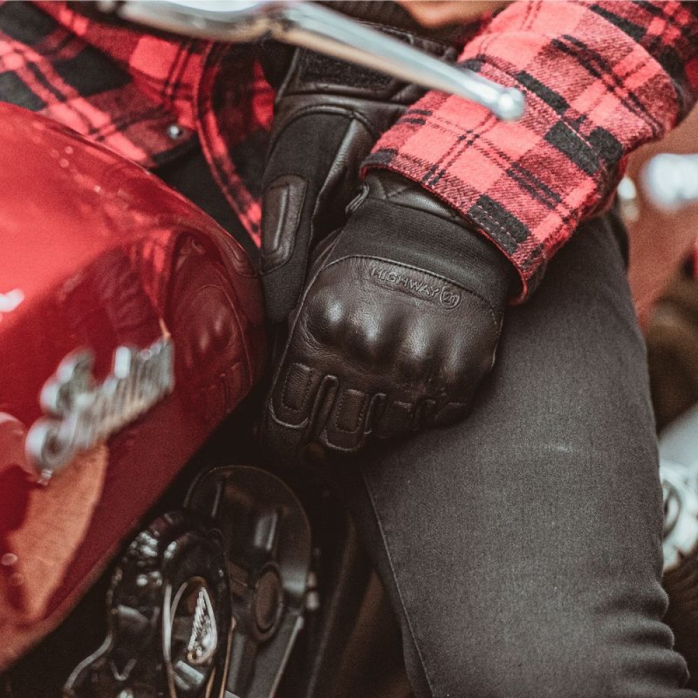 Модель Revolver от Highway21 – это стильные кожаные перчатки с усиленными элементами и хорошим уровнем защиты, предназначенные для уличного использования. Они совмещают классическую кожу с тактическими вставками и обеспечивают комфорт как для ежедневной езды, так и для коротких поездок.Верхний материал: натуральная козья кожа (goat skin leather) – прочная, износостойкая, достаточно гибкая.Тактические вставки из армида (Kevlar / Aramid reinforced panels) для улучшенной стойкости к истиранию в критических зонахЖесткая формованная защита (molded hard knuckle protection) – обеспечивает ударопрочность для области костей рукПерчатки с предварительно изогнутыми пальцами (pre-curved fingers) – для более комфортной посадки и меньшей усталости во время движенияУсиленная ладонь (reinforced padded palm) – для лучшего сцепления и амортизации вибрацийРегулируемый манжет на липучке (hook and loop adjustable cuff) – для надежной фиксации перчатки на запястьеЧувствительность к сенсорным экранам (touch screen compatible/touch finger tip) – позволяет работать с телефоном или GPS, не снимая перчатки
