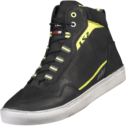 LS2 Zoe Lady Boots Black Hi-Vis Yellow - це стильні черевики, які виглядають як модні взуття, але при цьому мають всі необхідні характеристики для безпечного мотоциклетного походу. Вони виготовлені з натуральної шкіри з олійним гідрофобним покриттям, що робить їх практично водонепроникними. Ці черевики мають стійку до масла та бензину гумову підошву з високим підбором, який забезпечує оптимальне зчеплення з підлогою та педалями. Крім того, мисок, кісточка та п'ята додатково посилені, що забезпечує додатковий захист від ударів.