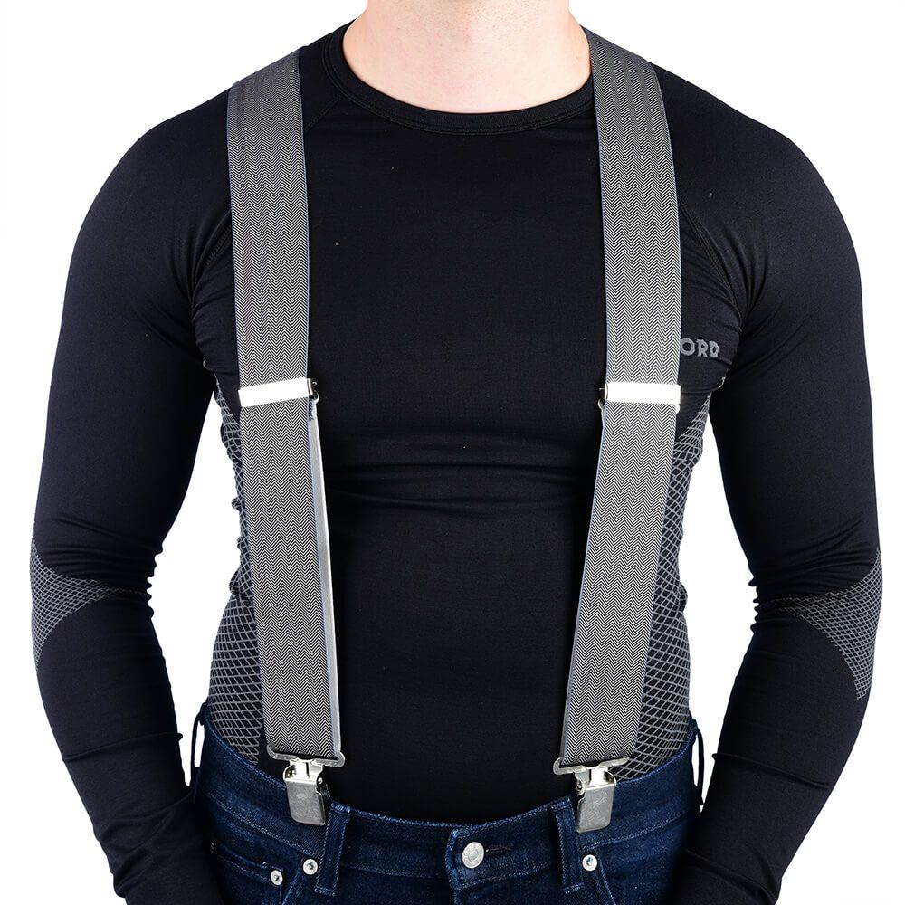 Підтяжки Oxford Products riggers herringbone - це стильний і надійний аксесуар для штанів, який підкреслить ваш образ і забезпечить комфорт під час носіння. Однією з основних особливостей підтяжок є гумові зуби, які запобігають зачепленню і захищають вашу одяг від пошкоджень. Надміцні затискачі забезпечать надійне кріплення, а регульований розмір дозволить налаштувати довжину від 400 до 790 мм для ідеального пасування.