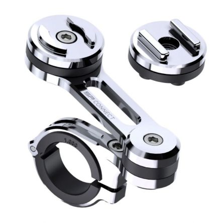 Кріплення на кермо SP Connect moto mount pro chrome spc+ - це ідеальне рішення для прикріплення чохла для телефону SP Connect або інших сумісних пристроїв SP Connect до мотоцикла. Однією з головних особливостей цього кріплення є виготовлення з авіаційного алюмінію, що робить його міцним і надійним. Також він підходить для стандартних та великогабаритних кермів, забезпечуючи універсальну сумісність з більшістю мотоциклів.